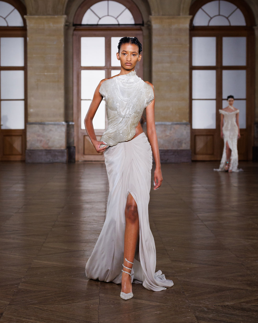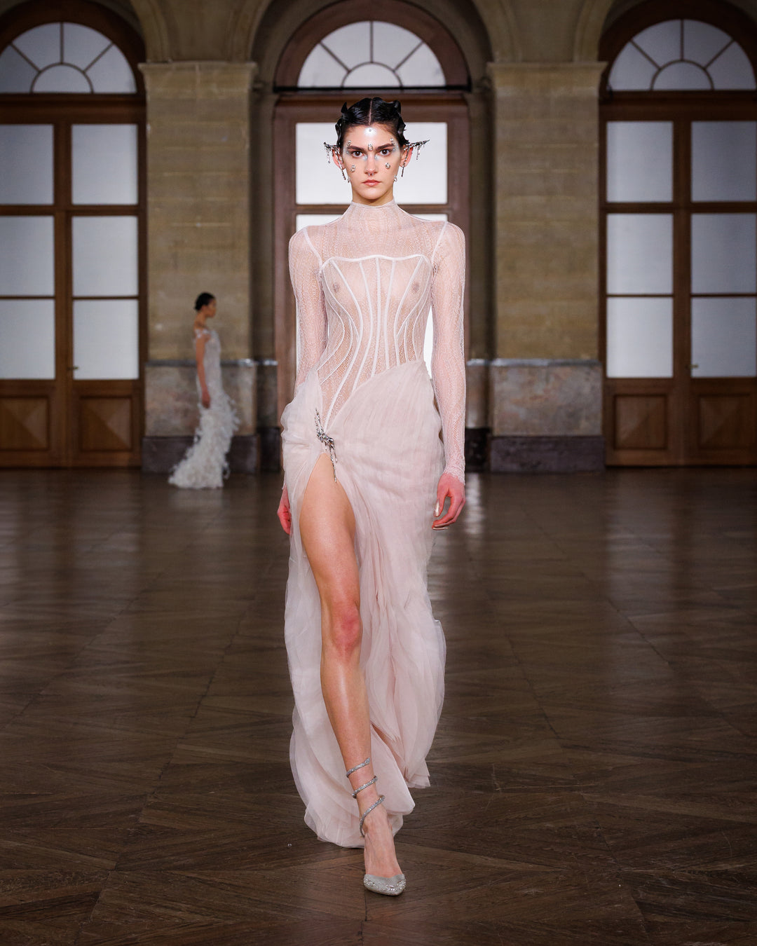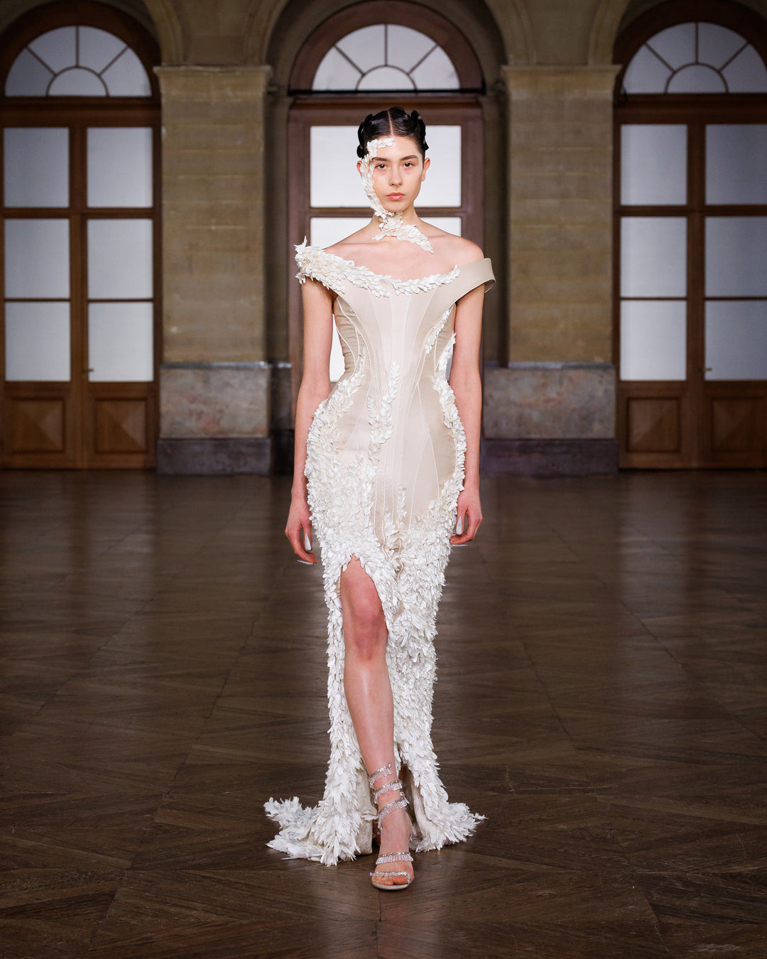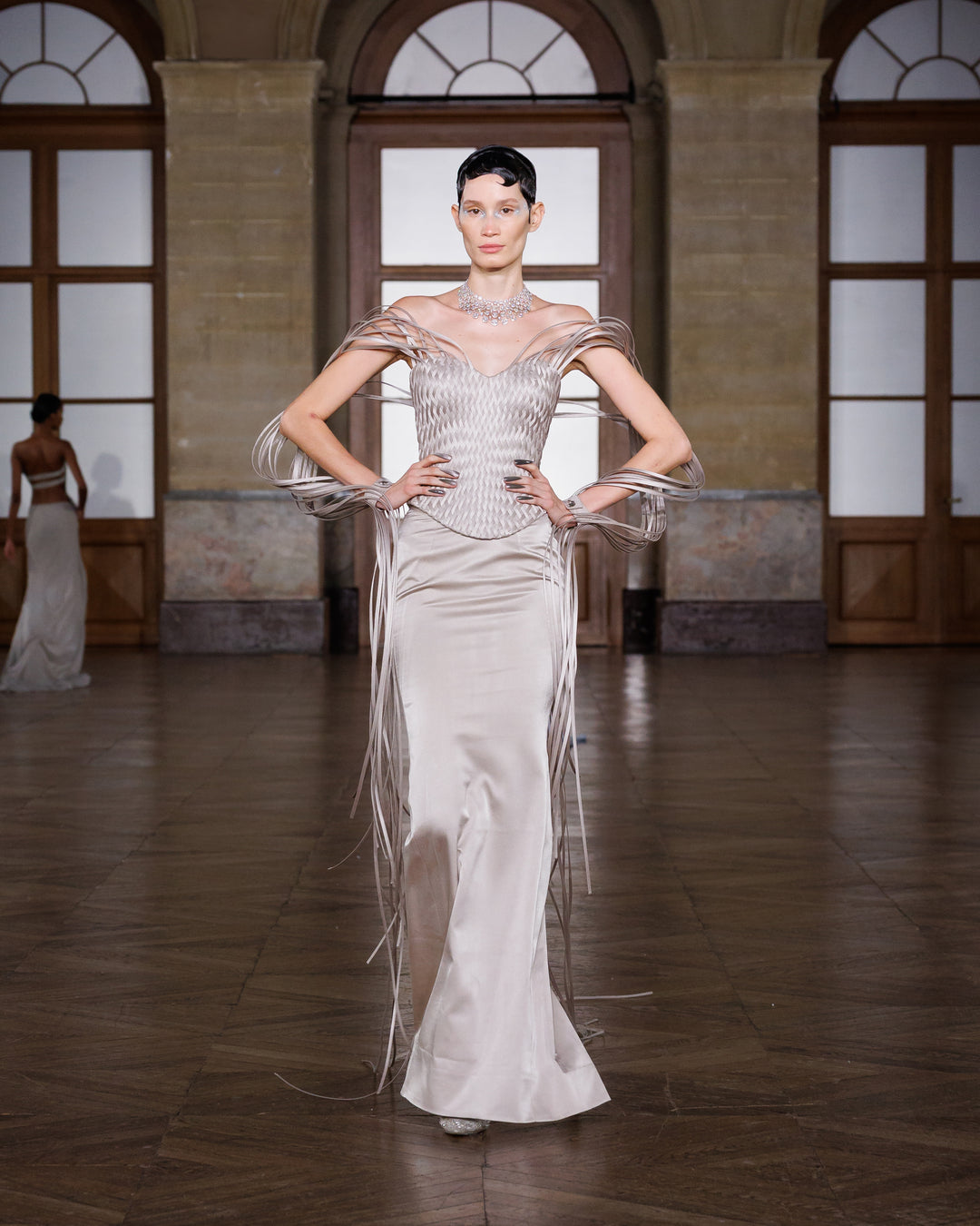 “Every silhouette in this collection is built as a living structure. We are not decorating the body, we are mapping consciousness, memory, and movement onto it through craft, architecture, and time. These garments are meant to feel alive, as if they are still in the process of becoming, carrying within them the tension between what is seen and what is felt.”