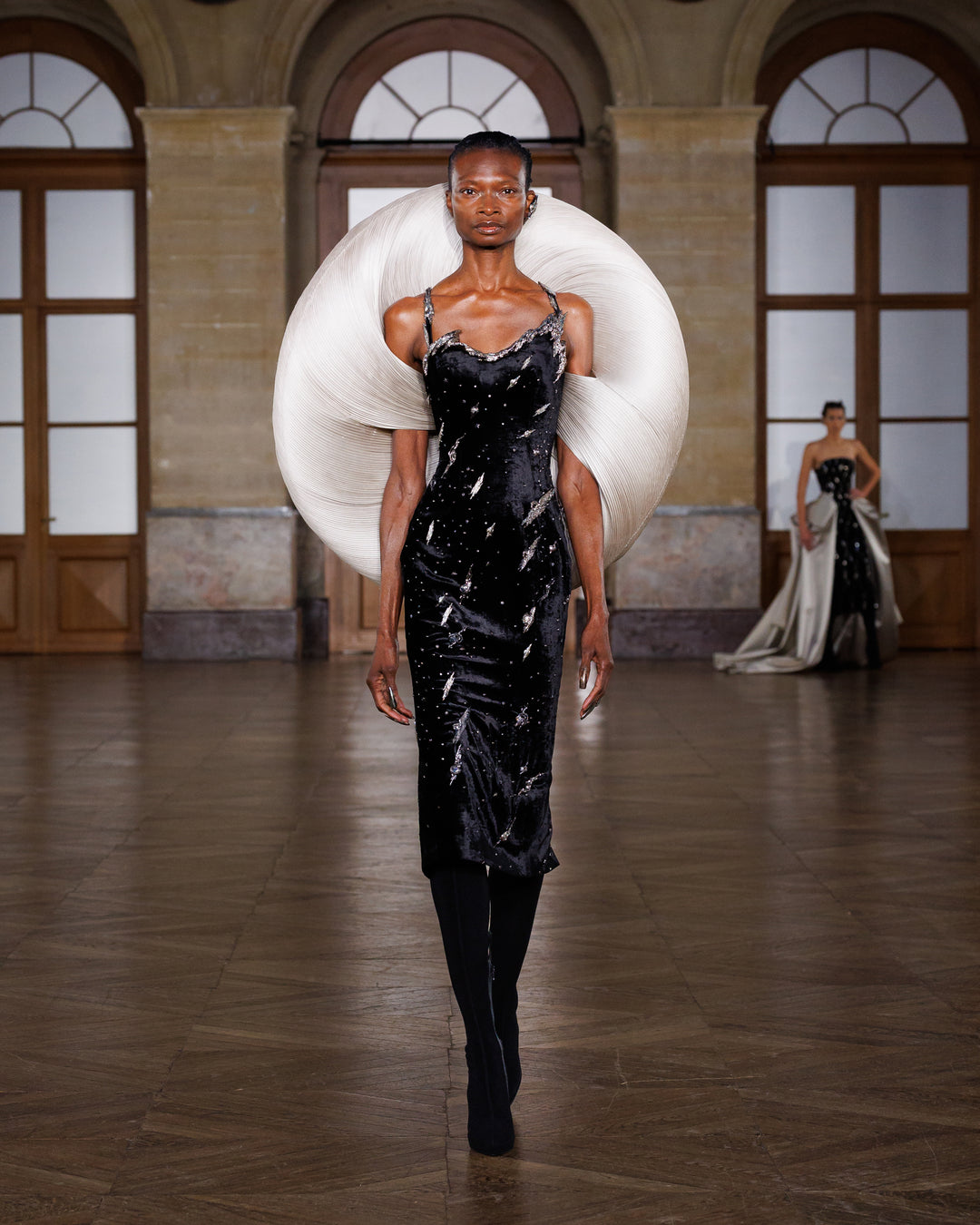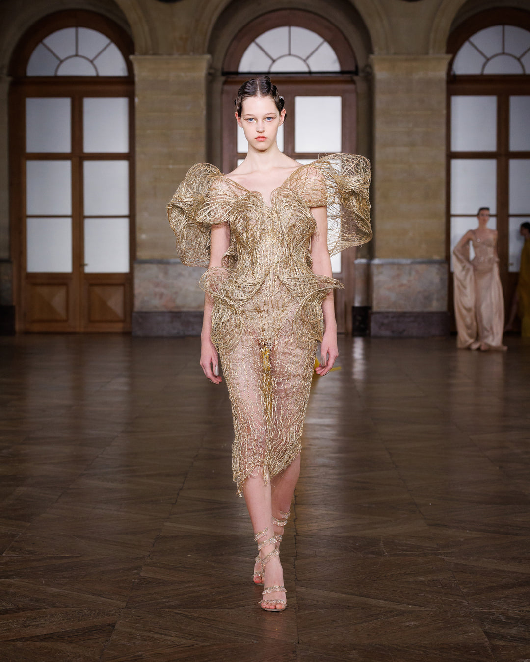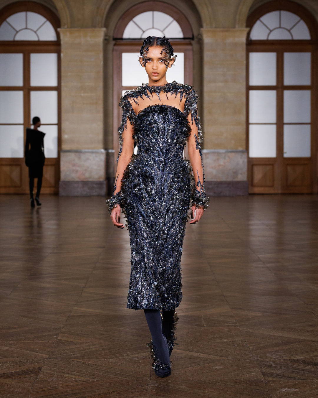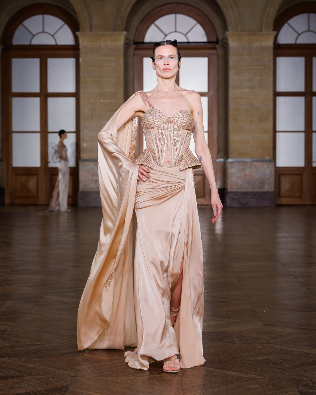“Every silhouette in this collection is built as a living structure. We are not decorating the body, we are mapping consciousness, memory, and movement onto it through craft, architecture, and time. These garments are meant to feel alive, as if they are still in the process of becoming, carrying within them the tension between what is seen and what is felt.”