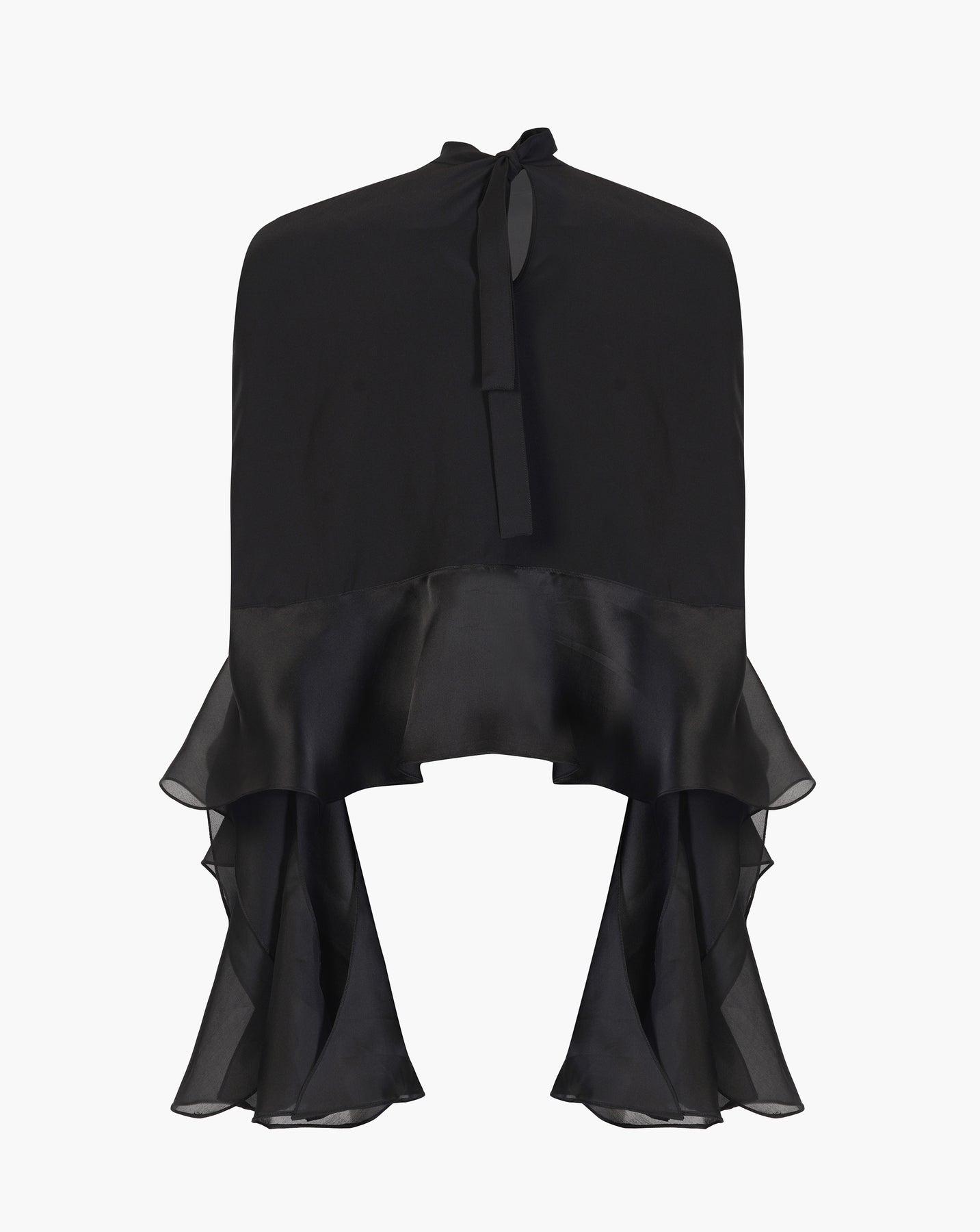 Black crepe top with satin organza waves.