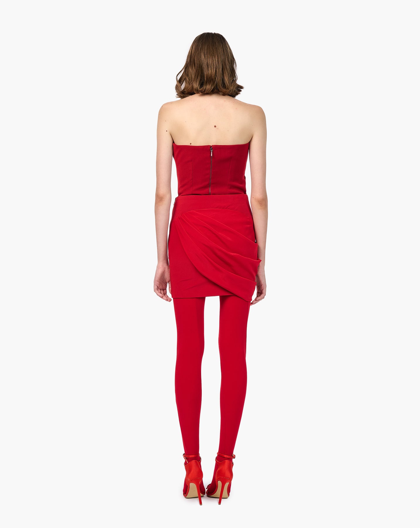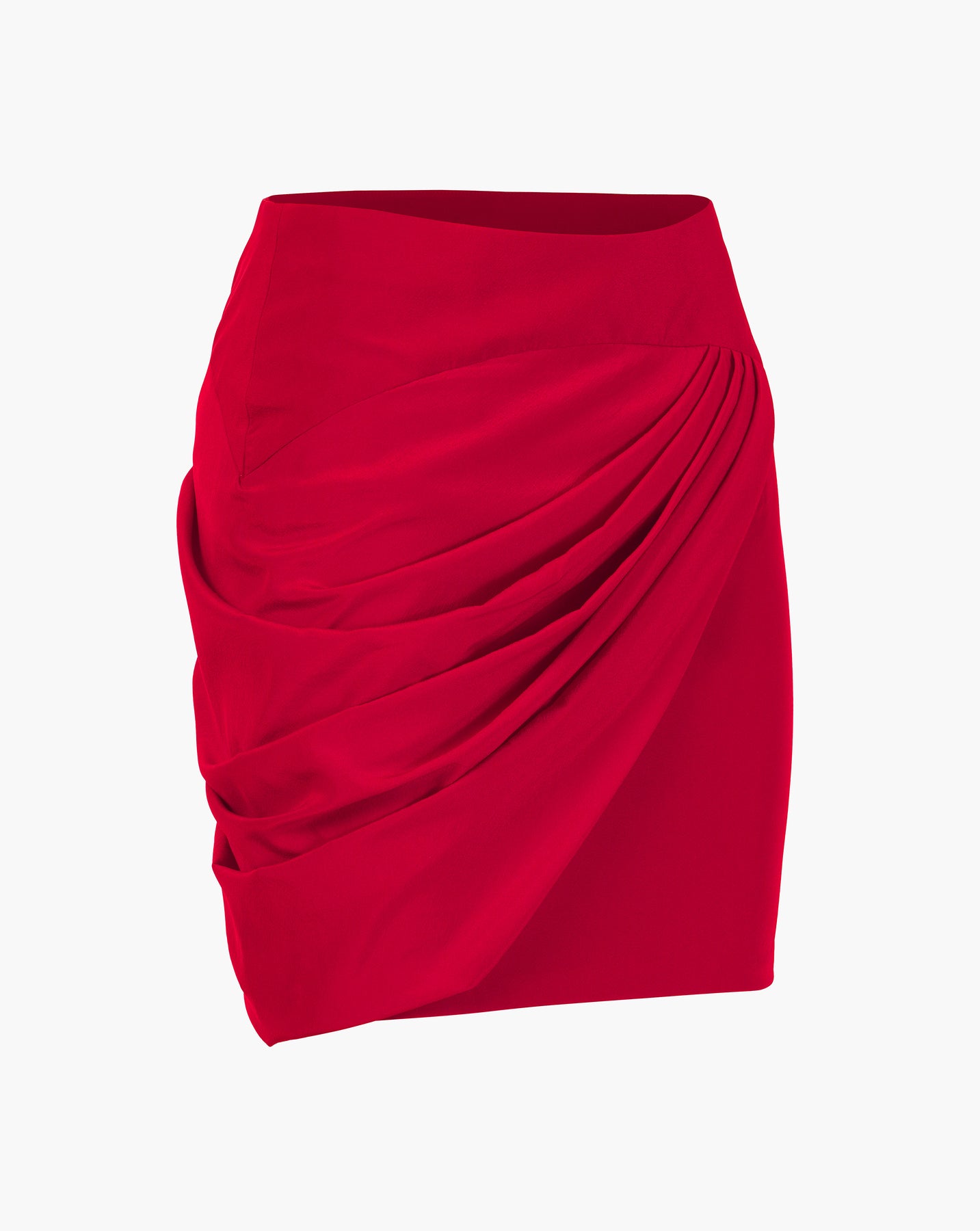 Rubescent red crepe draped cropped skirt.