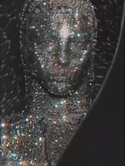 Over 20,000 Preciosa crystals are embedded across the collection - amplifying key silhouettes with cosmic luminosity. Each crystal is thoughtfully placed to mimic the shimmer of constellations, astral planes, and metaphysical energy.