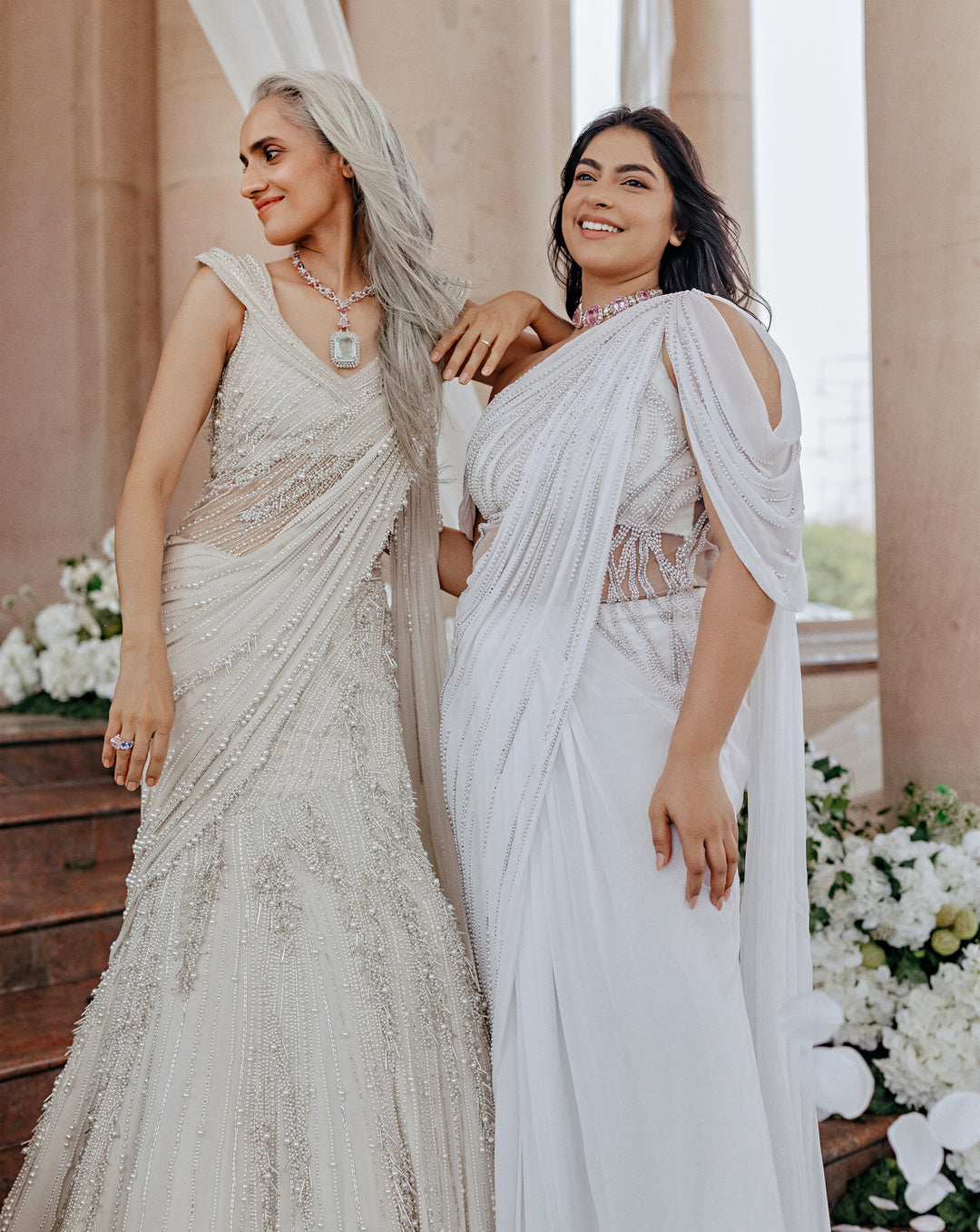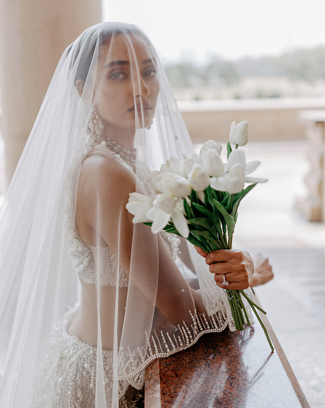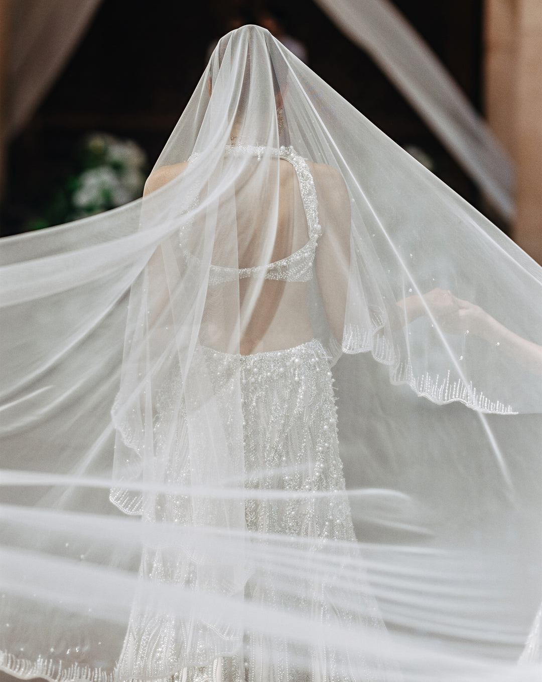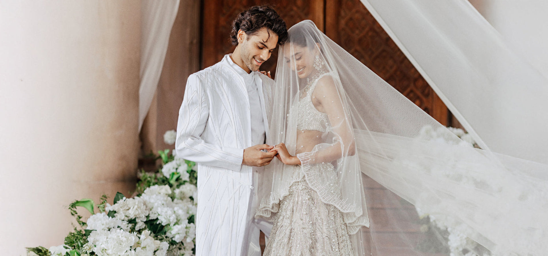 A poetic interplay of tradition and innovation, The Vow reimagines the bridal moment in ivory. Drawing from cosmic inspiration, the Pearl Edit features glass embroideries, luminous pearls, and iridescent crystals that shimmer like stardust. These elements, meticulously hand-embroidered by Indian artisans, create light-infused surfaces that speak to the sacredness of the wedding ritual.