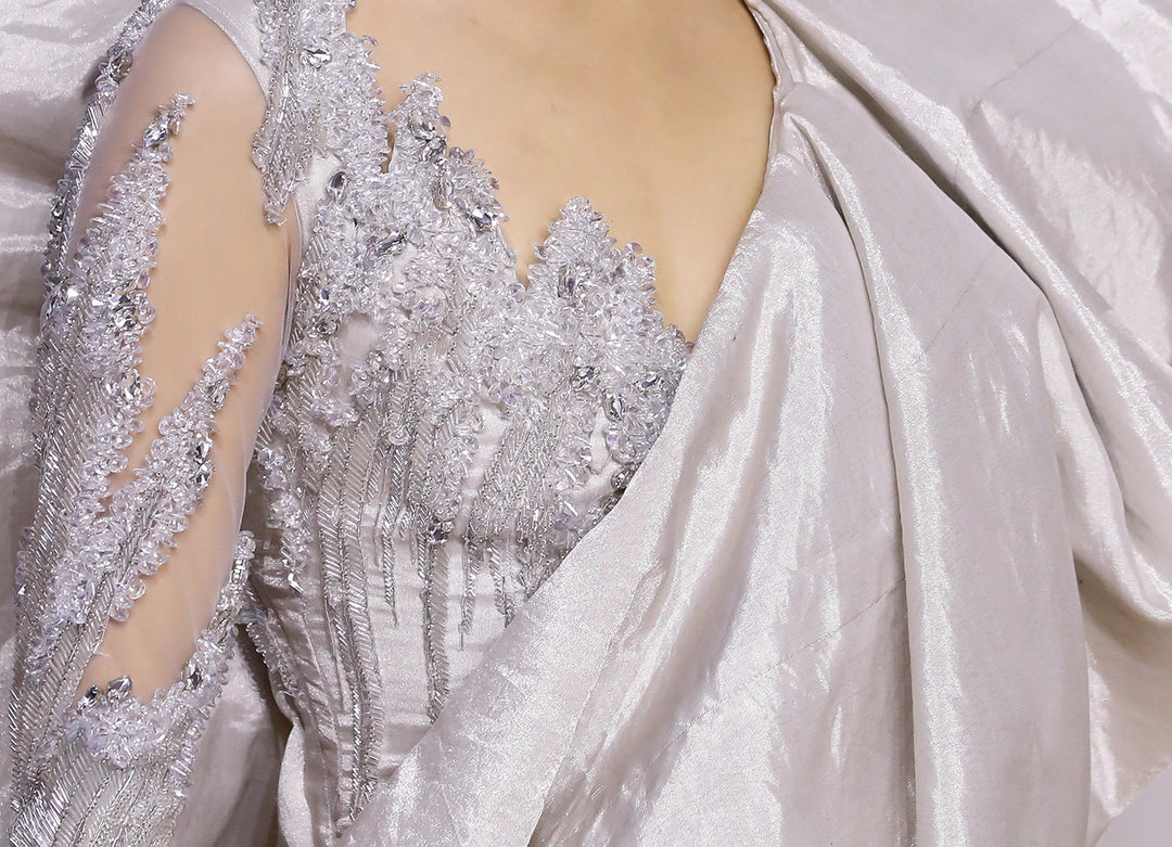 Shunya is a Sanskrit word which translates as zero. Zero was discovered in India many centuries ago. The stillness of zero and infinity expanded possibilities in studies of space and time. For our first showcase on the official calendar at Paris Haute Couture Week, Gaurav delved deeper into his mindscape to come up with a concept which is subliminal in thought and original in form.